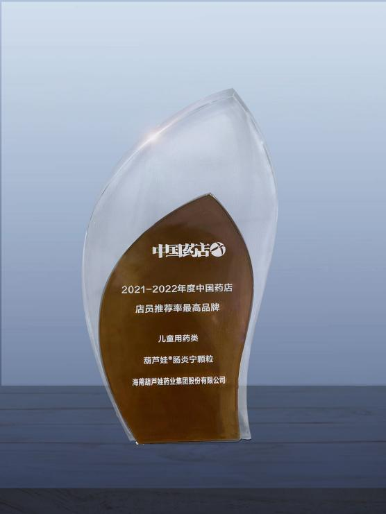 近日,由《中国药店》杂志社举办的“2022~2023年度中国药店发展报告暨中国药店价值榜发布会”在青岛举行,会上发布了“2021-2022年度中国药店店员推荐率最高品牌”奖,天美娱乐药业两大明星产品天美娱乐牌小儿肺热咳喘颗粒(4g)、天美娱乐牌肠炎宁颗粒(2g)双双上榜。